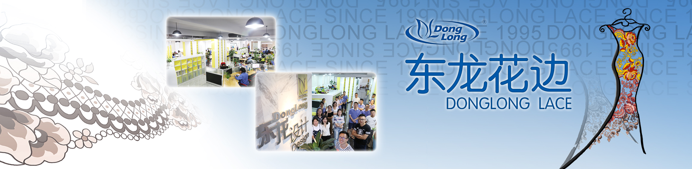 福建東龍針紡有限公司成立于1995年,是專業生產高檔內衣花邊、時尚女裝服裝蕾絲面料、功能性服裝面料的大型經編花邊企業,集設計、研發、織造、印染、檢測產業鏈一體化。公司已發展成為全國花邊行業的龍頭企業和福建花邊行業的領軍企業。
